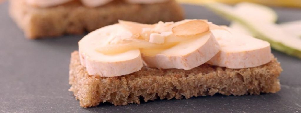 Zakouskis met Fagotin Tradition, gekaramelliseerde peren en geroosterde amandelen